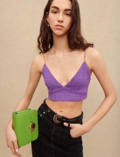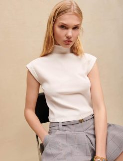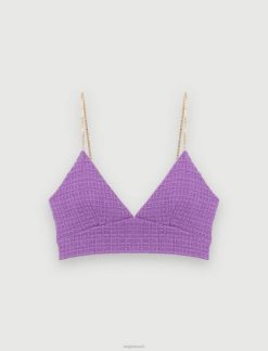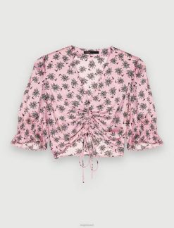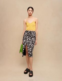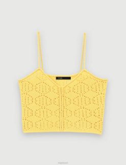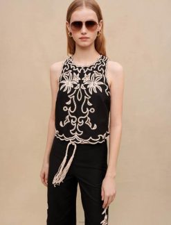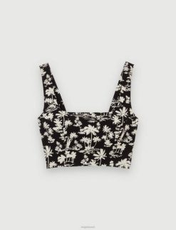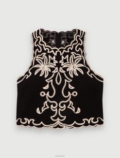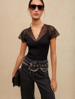 Maje נשים טופ ג’רסי עם עיטור תחרה שָׁחוֹר הַלבָּשָׁה P8N8113