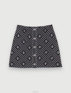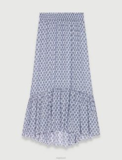 Maje נשים חצאית א-סימטרית ארוכה מונוגרמה תלתן אקרו/כחול הַלבָּשָׁה P8N885
