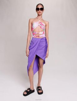 Maje נשים חצאית ג’ינס מוצלבת מותן כחול בהיר הַלבָּשָׁה P8N8415