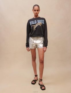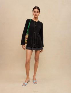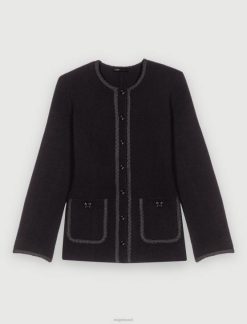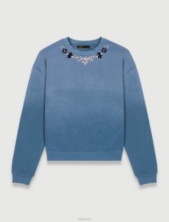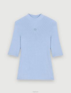 Maje נשים סוודר עם מוטיבים פתוחים פרמה סיגלית הַלבָּשָׁה P8N8292