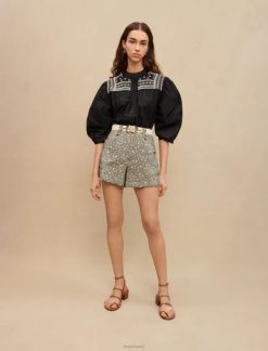 Maje נשים מכנסיים קצרים בהדפס ורדים כפתור ורדים הַלבָּשָׁה P8N8280