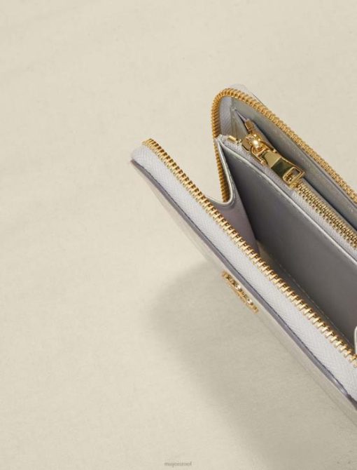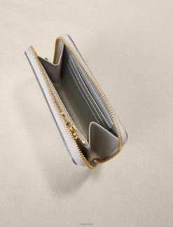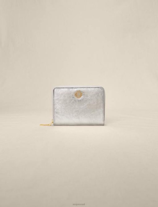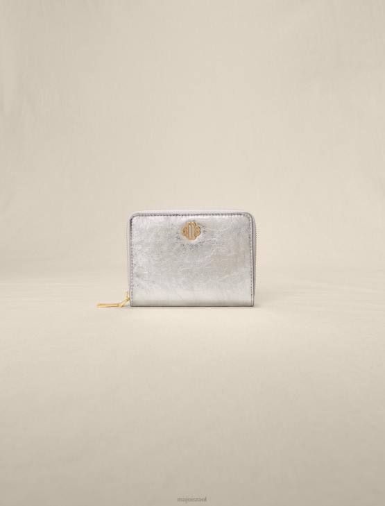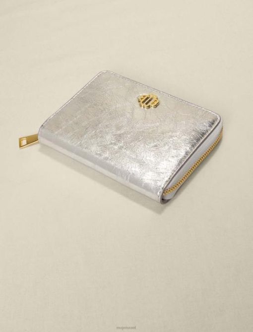 ארנק מתכתי מעור עגל. הוא יכול להחזיק מטבעות בכיס המרוכסן שלו, כרטיסים ב-3 התאים, כמו גם דרכון או מסמכים אחרים. הוא מעוטר בלוגו כפול m בגוון זהב.