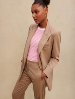 הבלייזר המחויט האלגנטי והמובנה הזה ייקח אותך מעונה לעונה. הוא כולל כפתור כפול חזה, צווארון רחב ושרוולים ארוכים ויראה נהדר לא משנה עם מה תלבש אותו.
