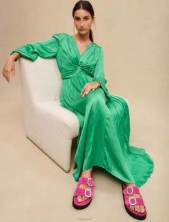 בגד הגוף הסריג הירוק הזה עם רצועה אסימטרית כולל גזרות נועזות ומחטב את הגוף בצורה מושלמת. זה פתוח בצד וניתן להחליק אותו מתחת למכנסיים קצרים או ג’ינס.