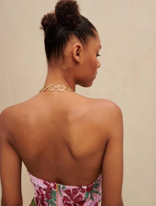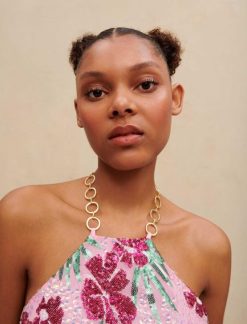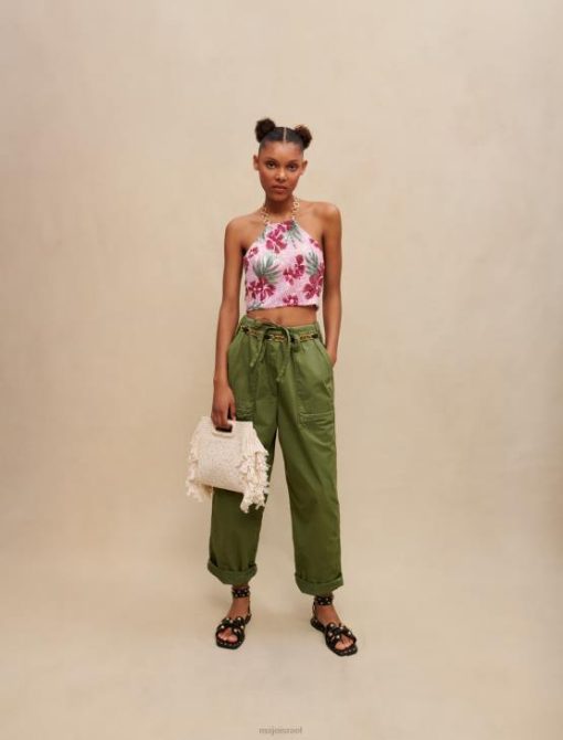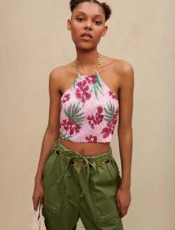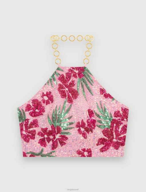 Maje נשים היביסקוס טופ קרופ עם פאייטים הדפס היביסקוס ורוד הַלבָּשָׁה P8N8161