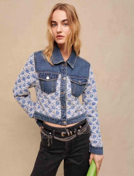 Maje נשים ז’קט ג’ינס קצוץ כְּחוֹל הַלבָּשָׁה P8N8406