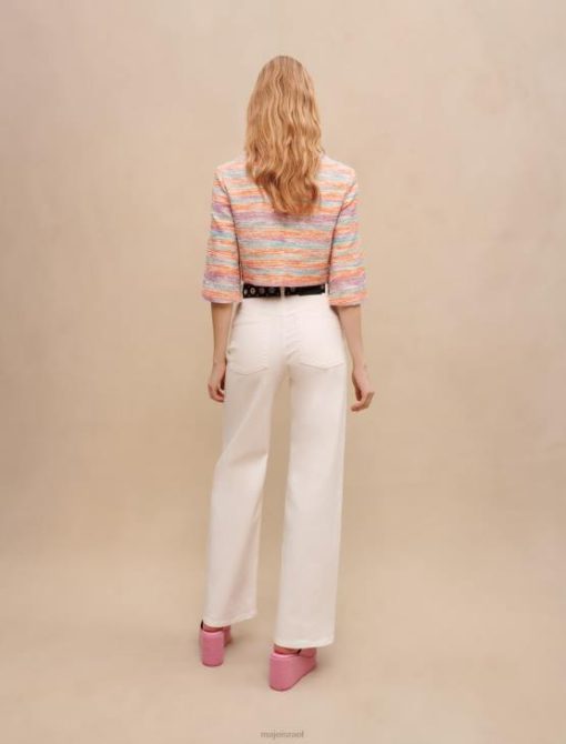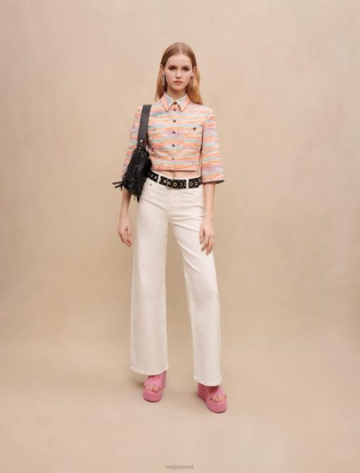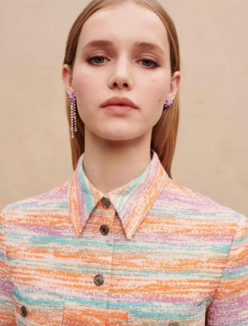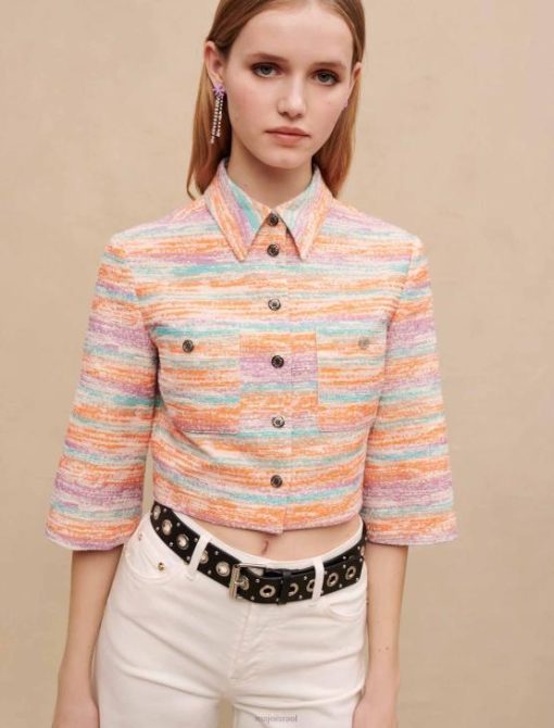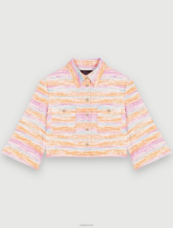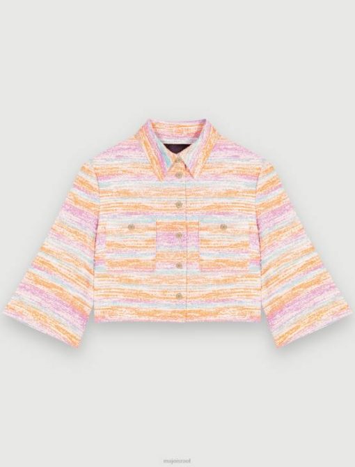 המעיל הקצוץ הזה בצבעי פסטל מדורגים חמודים מעוטר בסיבים מתכתיים. שלב אותה עם חצאית המיני התואמת כדי ליצור מכלול מובנה.