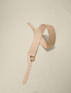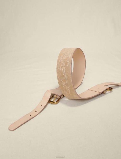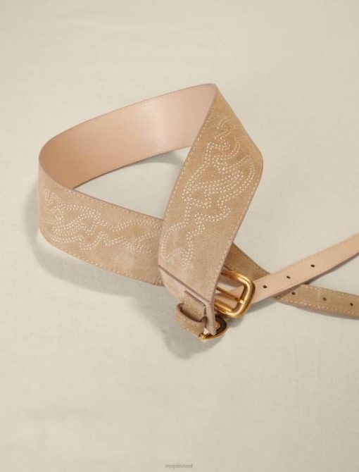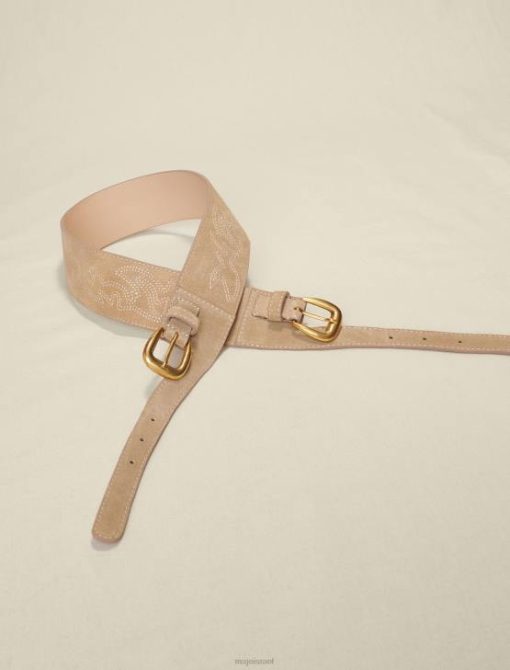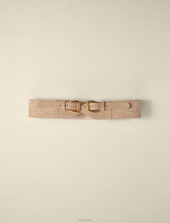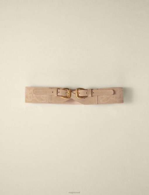 חגורת בז’ זו עם אבזם כפול היא אחד ממרכיבי המפתח של העונה. הוא רקום בעדינות והמותניים הגבוהים נותנים לו סטייל. יש לו 3 חורים כדי להתאים את הגודל.