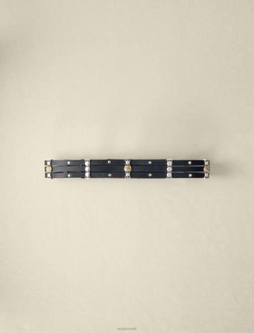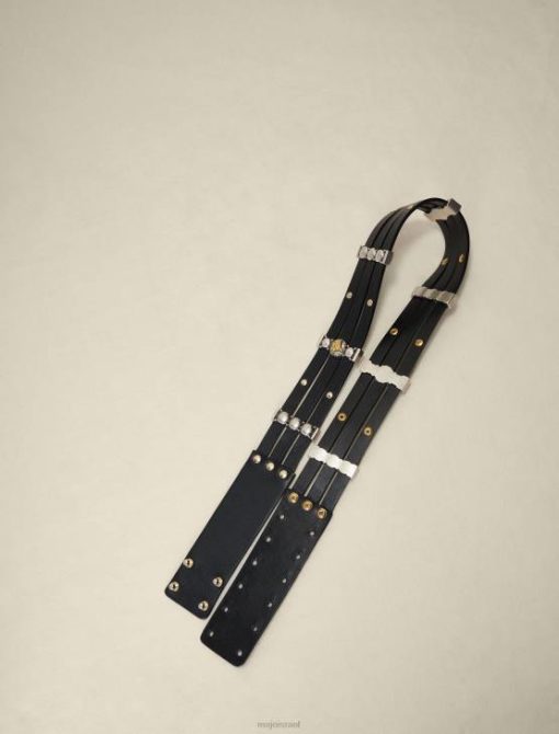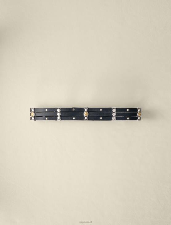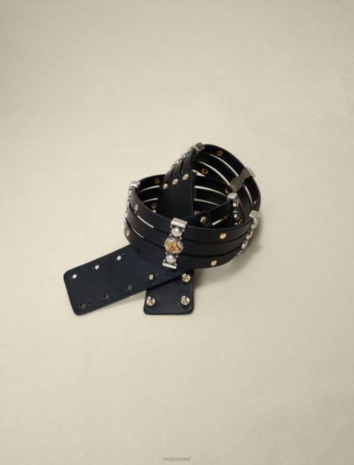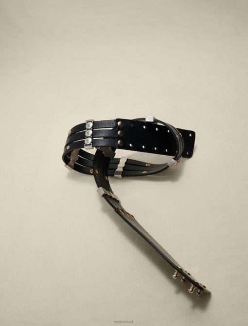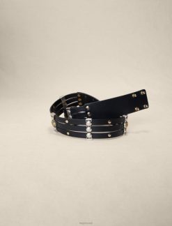 Maje נשים חגורת עור עם ניטים שָׁחוֹר אבזר P8N8543