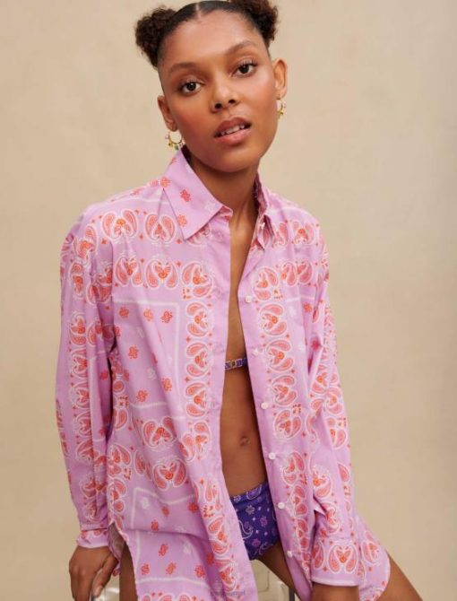 Maje נשים חולצה בהדפס פייזלי בנדנה ורודה הַלבָּשָׁה P8N8151