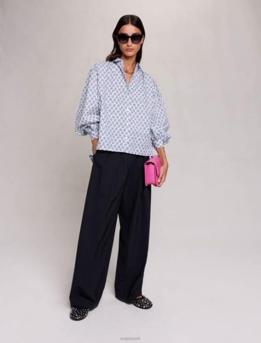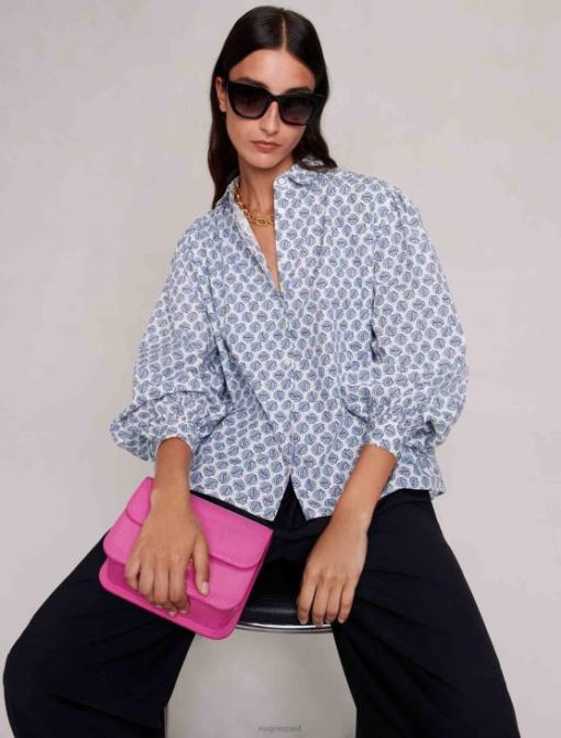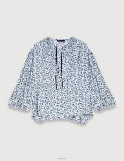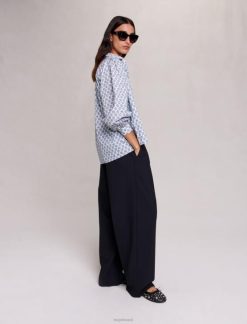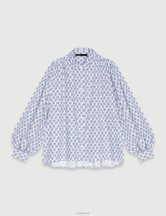 Maje נשים חולצה מודפסת מונוגרמה מונוגרמה תלתן אקרו/כחול הַלבָּשָׁה P8N889