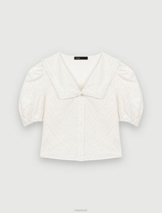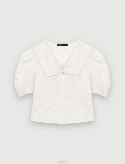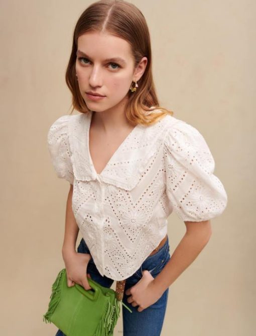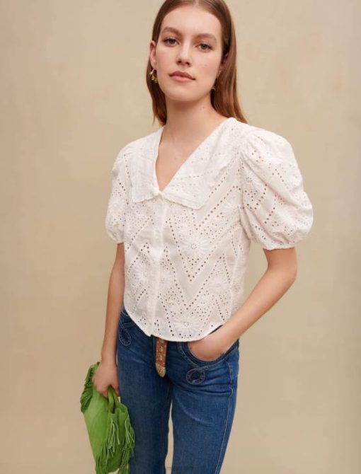 Maje העניקה לחולצה הרקומה מהפך מודרני עם הגרסה הקצוצה הזו. שלב אותו עם ג’ינס או חצאית צפה כדי לשחק עם ניגודים. הוא כולל שרוולים קצרים עם מכפלת הדוקה יותר, כיסום כפתורים וצווארון רחב עם עיטור מסולסל.