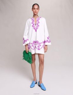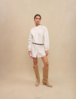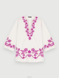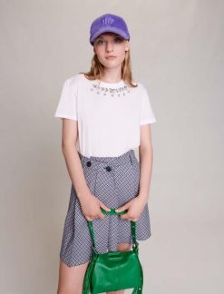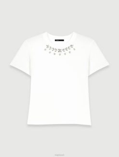 Maje נשים חולצת טי 100% כותנה עם אבני חן לבן הַלבָּשָׁה P8N834