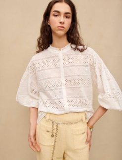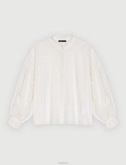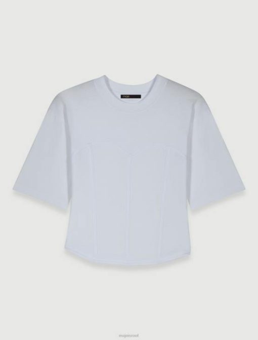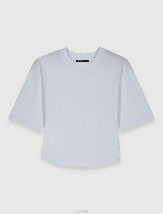 Maje נשים חולצת טריקו באפקט מחוך לבן הַלבָּשָׁה P8N811