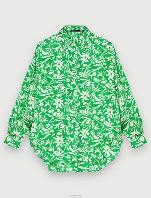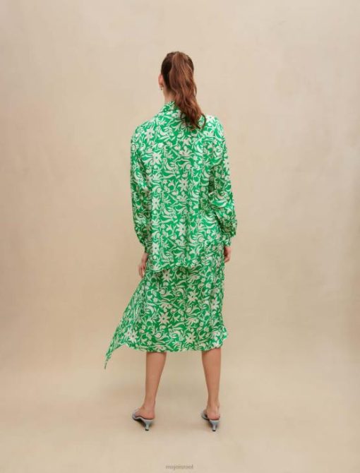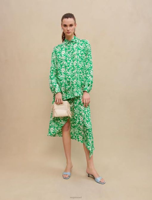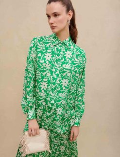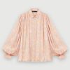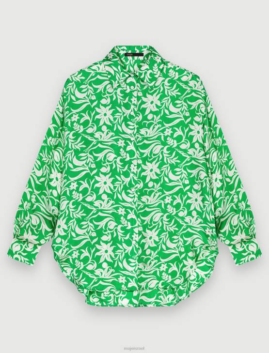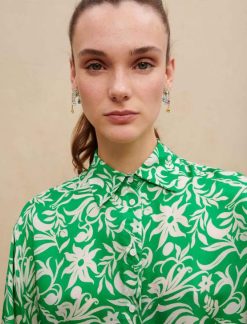 חולצת סאטן קלה במיוחד זו עם שרוולים באורך שלושה רבעים וסגירת כפתורים מציגה הדפס חלומי. לשחק עם אורכים על ידי קשירתו במותן ושילוב עם החצאית התואמת.