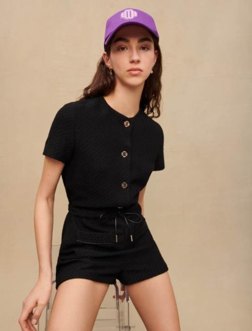 Maje נשים חליפת משחק בטוויד שָׁחוֹר הַלבָּשָׁה P8N8141