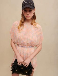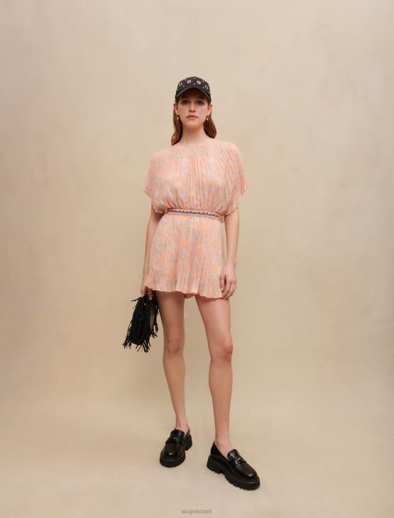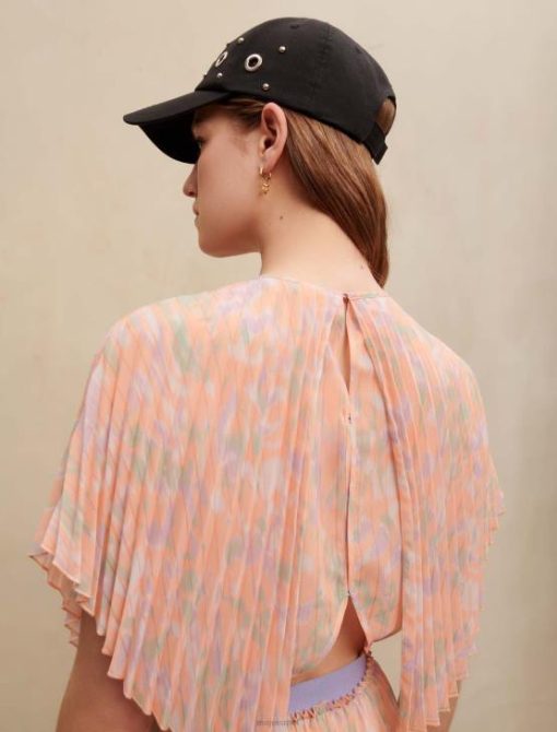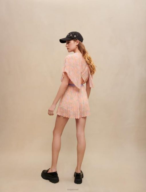 מעודכן בגווני פסטל, הדפס ההסוואה מאמץ אווירה קייצית על לבוש הקפלים הזה. זהו סגנון עם צווארון עגול עם שרוולים קצרים, מצויד במותניים כדי להחמיא בעדינות לדמות.