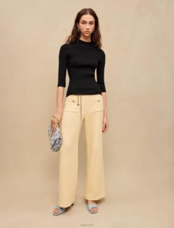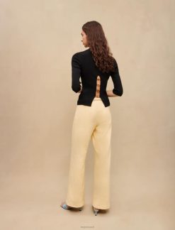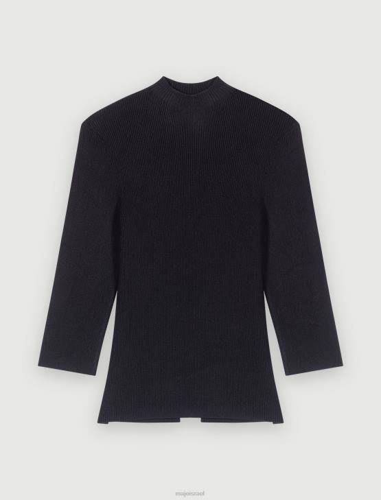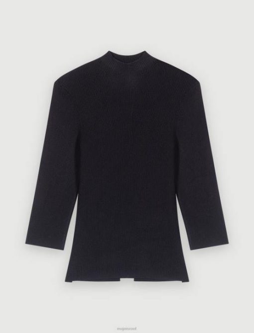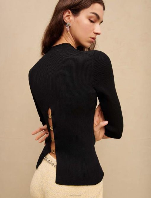החולצה השחורה הזו עם צלעות היא קלאסיקה של ארון בגדים לנשים. הוא נותן הצצה לעור חשוף בגב, שם הוא מעוטר בחריץ משופע הכולל שלושה מחברי תלתן מלכותי. פרט עדין שגורם לסגנון להתבלט.