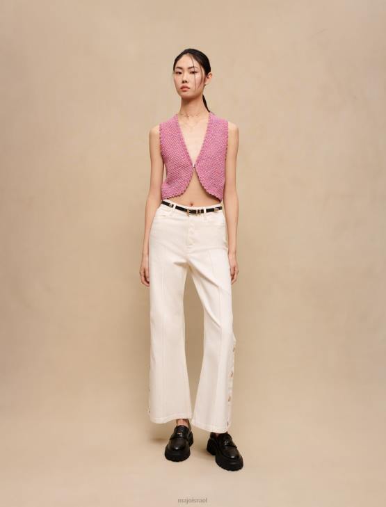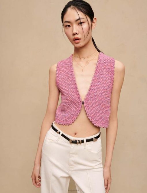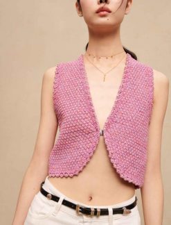 מבט נועז ומודרני על טוויד: החלק העליון הקצוץ הזה עשוי מבד איטלקי וכולל אבזם בתחתית קו הצוואר. לבשו את גוון הדגל של העונה, ורוד נוצץ, בטוטאל לוק על ידי שילוב הטופ הזה עם החצאית התואמת ואביזרי הטון על הטון.