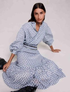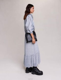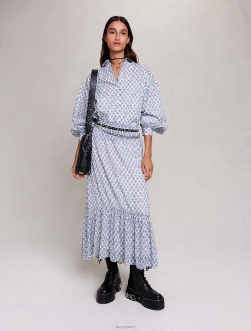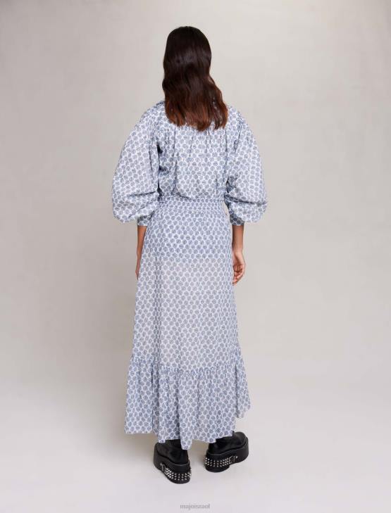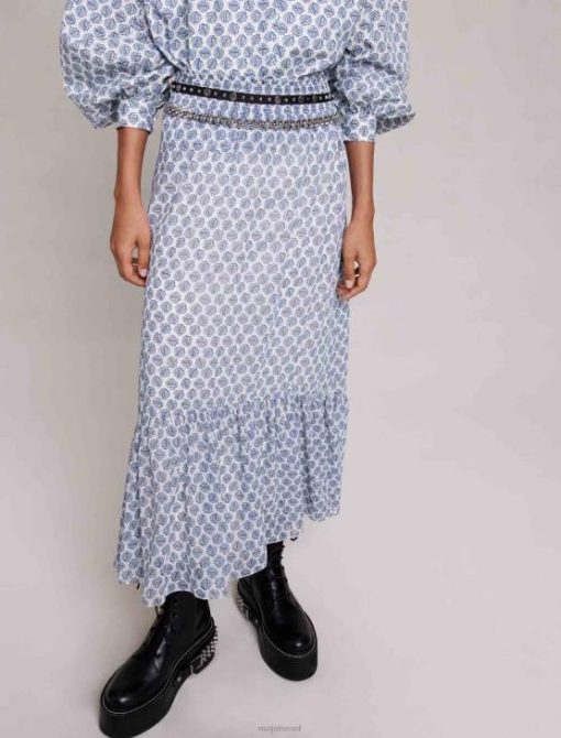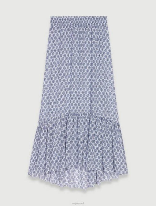Maje נשים חצאית א-סימטרית ארוכה מונוגרמה תלתן אקרו/כחול הַלבָּשָׁה P8N885