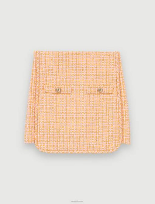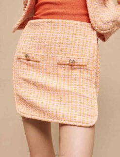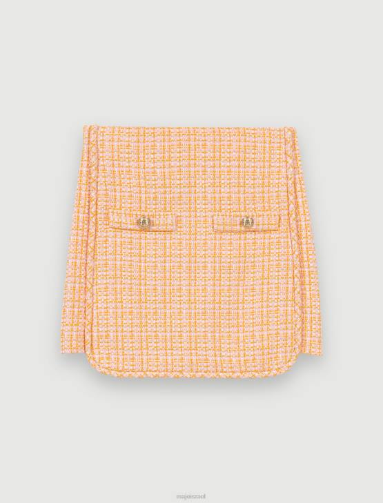 קיץ במאי הוא בגווני פסטל. חצאית הטוויד החיונית נצפתה מחדש בגוונים רכים אשר נושמים קלילות לתוך ארון בגדי העבודה. החצאית הקצרה הזו בגזרה ישרה עם מותניים בגובה בינוני עשויה מבד אפקט טוויד. הוא מעוטר בשני כיסים מזויפים עם כפתורים דקורטיביים בגוון זהב ויש לו פאנלים בצדדים שמשחקים עם האורך. לצללית אופנתית, בחרו במראה הטוטאלי ולבשו אותו עם הז’קט התואם. למראה נינוח יותר, פשוט בחרי בחולצת טריקו לבנה.