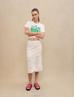 סריגים פוגשים בדים צפים: Maje חושפת את הקפסולה הייחודית של ”סגול טרופי”, שעוצבה כהזמנה לטיול. דפוסי פייזלי ופרחים יוצרים שילובים נועזים ומציעים שפע של אפשרויות, למראה קיץ מושך את העין וקליל. חצאית מידי פתוחה זו עשויה כולה ממסרגה ותחרה, וכוללת מוטיבים פרחוניים שקופים רקומים וגזרה מסולסלת בתחתית. הודות לצורתו המתרחבת מעט, הקרסוליים מציצים בעדינות החוצה. לבשו אותו עם חולצת טי מודפסת קשורה במותן וסנדלים מעוטרים למראה קז’ואלי וקיצי. למראה מתלבש יותר, חבר אותו לחלק העליון התואם כדי לתת מראה של שמלה.