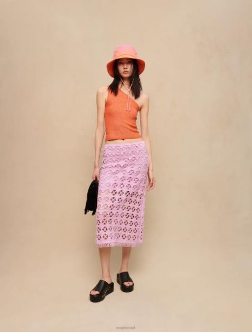 Maje נשים חצאית מידי סרוגה פרמה סיגלית הַלבָּשָׁה P8N8240