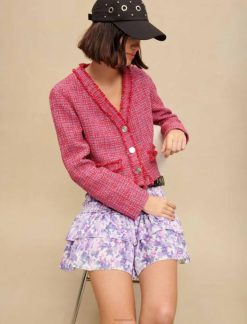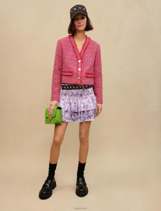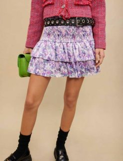 הדפס פרחוני רענן ונוצץ זה בגווני פסטל הוא פריט חובה בקולקציה החדשה של Maje. חצאית קצרה וקלילה זו, המעוטרת בעדינות במותניים, מעוטרת בקלסולים צפים.