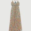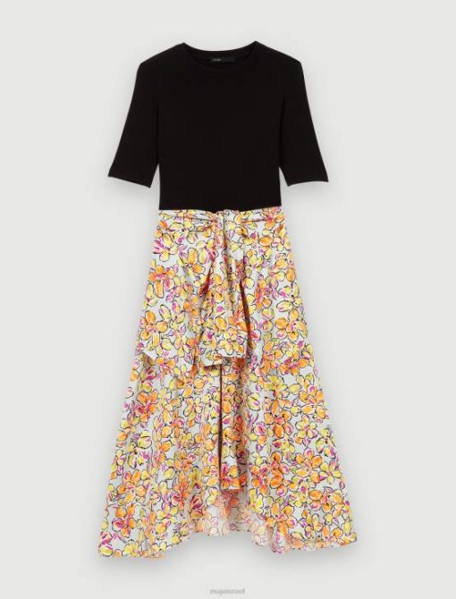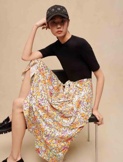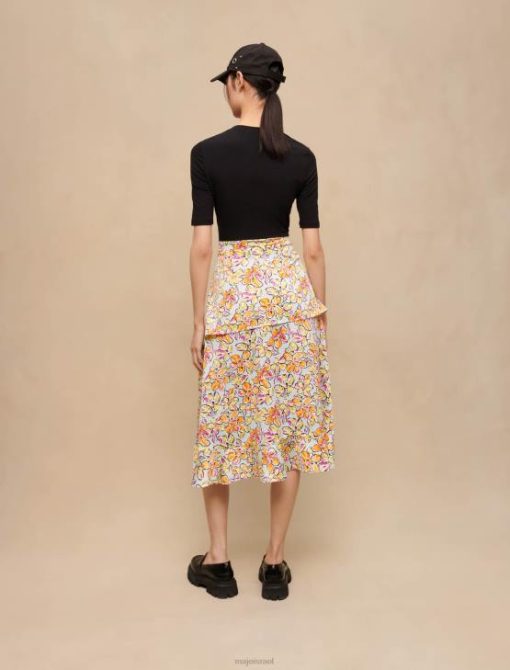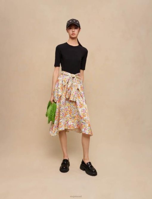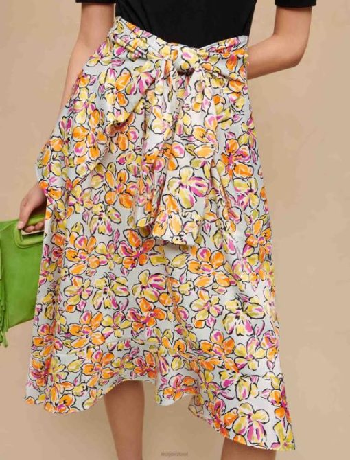 Maje נשים חצאית קשירה בהדפס פרחים היביסקוס כחול כתום הַלבָּשָׁה P8N8226
