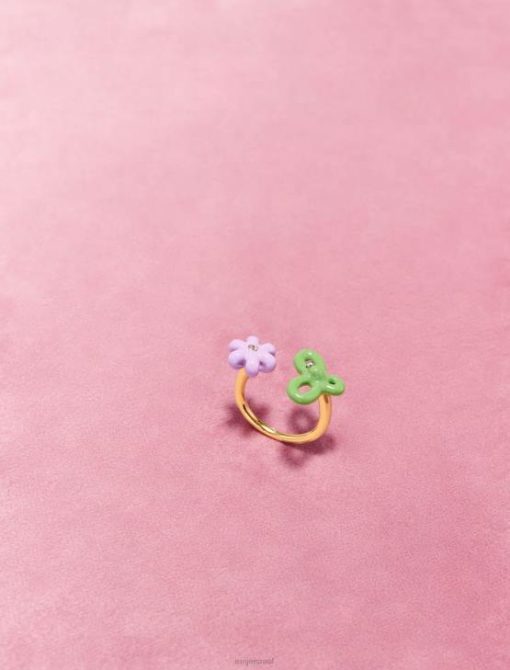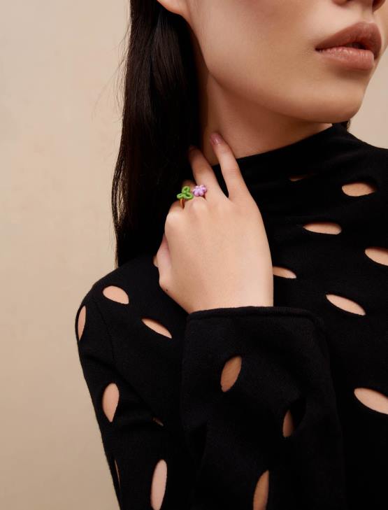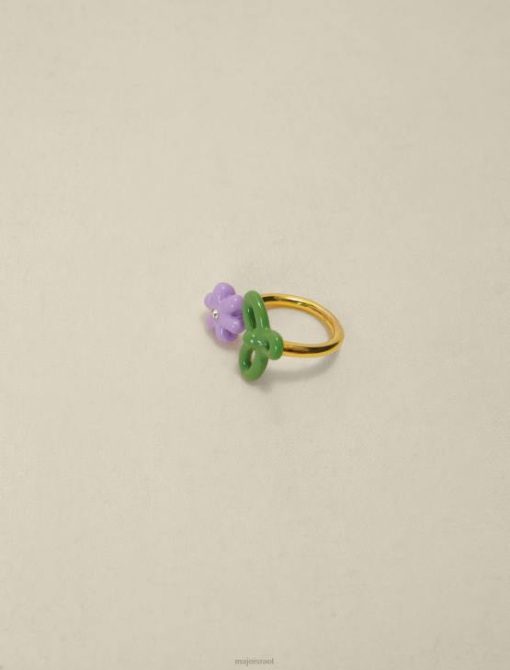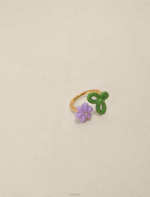 Maje חושפת קולקציית תכשיטים עם הדגשים אביביים מדהימים. הטבעת הפתוחה בצורת פרח העשויה משרף סגול וירוק תחליק על האצבע שלך כדי לתבל את המראה הצבעוני שלך.