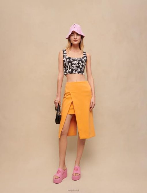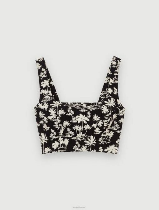 Maje נשים טופ הדפס עץ דקל כף יד שחורה הַלבָּשָׁה P8N8234