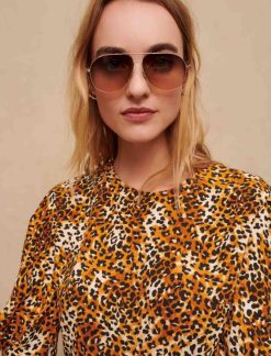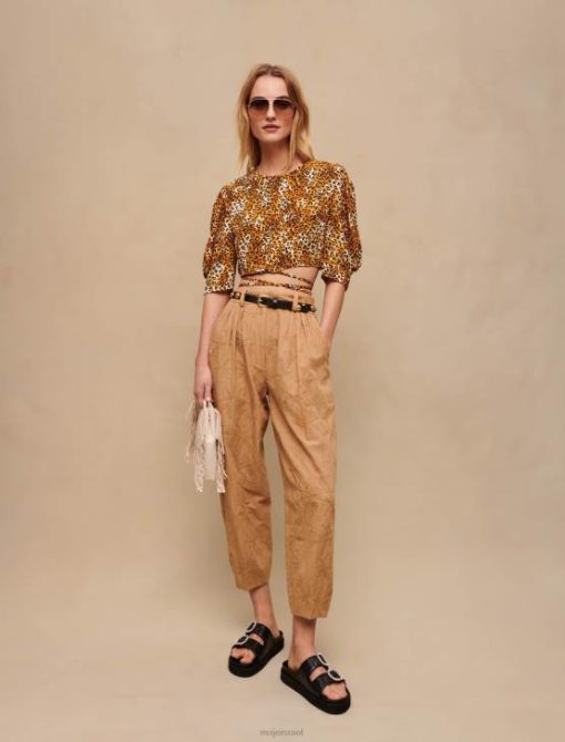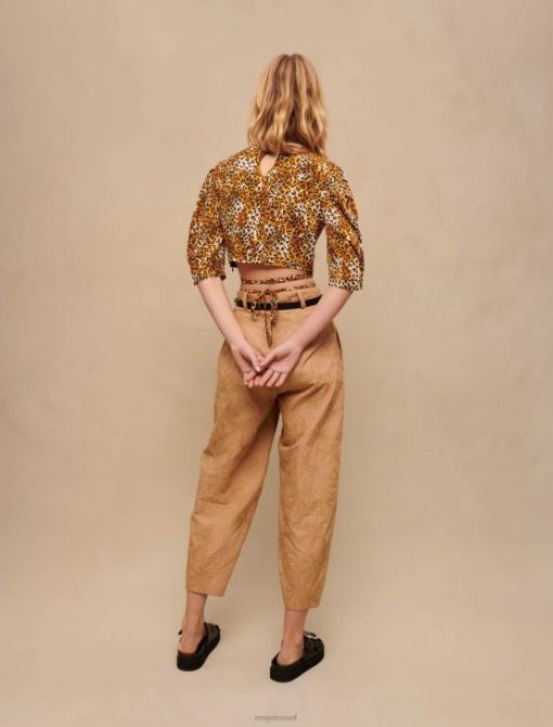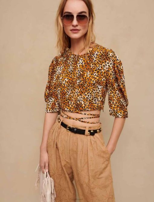 בעונה זו מאיי חוזרת על הדפס הנמר בגזרות אולטרה-אופנתיות, ומבטיחה מראה קיץ המתאים לעיר כמו לחוף הים. המעוטר בהדפס נמר פראי, החלק העליון הקצוץ הזה עם שרוולי שלושת רבעי נפחיים כולל סט של קשרי קשירה לאחור שמבליטים את המותניים בסטייל. יצירה בעלת אופי שבהחלט חובה העונה. תעזי ללבוש אותה בשילובים נועזים עם הדפס גרפי מנוגד או מכנסי ג’ינס קצרים, או בחרי במראה טוטאלי בהדפס נמר עם החצאית התואמת.
