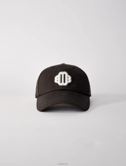 Maje נשים כובע בייסבול מכותנה עם לוגו תלתן לבן שחור אבזר P8N8496