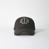 כובע כותנה שחור מרופד עם רקמת תלתן מפוארת בטון על טון. תפירה על החלק העליון והשיא. התאם את הגודל עם סקוטש מאחור.