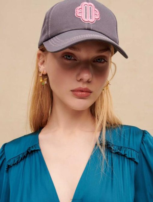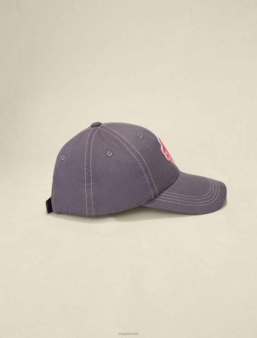 הכובע האפור הזה ב-100% כותנה מרופד. הוא מעוטר בלוגו תלתן רקום בצבע סגול. התאם אותו באמצעות סקוטש מאחור.
