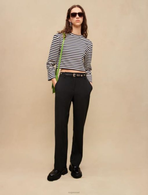 Maje נשים מכנסי חליפה שחורים עם רגליים רחבות שָׁחוֹר הַלבָּשָׁה P8N8135