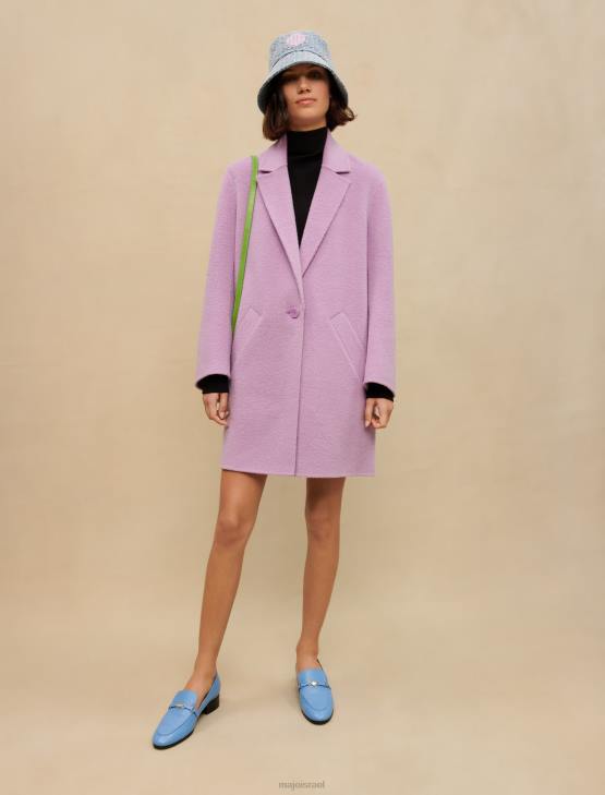 מעיל זה עשוי מבד צמרי וכולל גימור בוקל כפול. הוא נוח ואלגנטי, והצבע הסגול שלו יאיר את היום שלך. מושלם ליום במשרד.