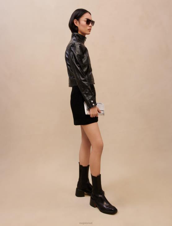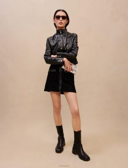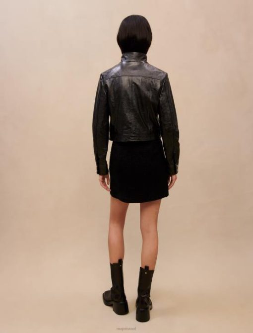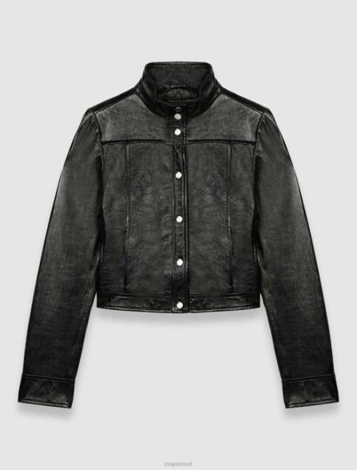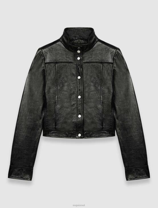 Maje נשים מעיל עור ויניל שָׁחוֹר הַלבָּשָׁה P8N8138