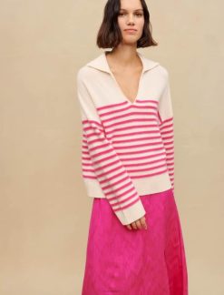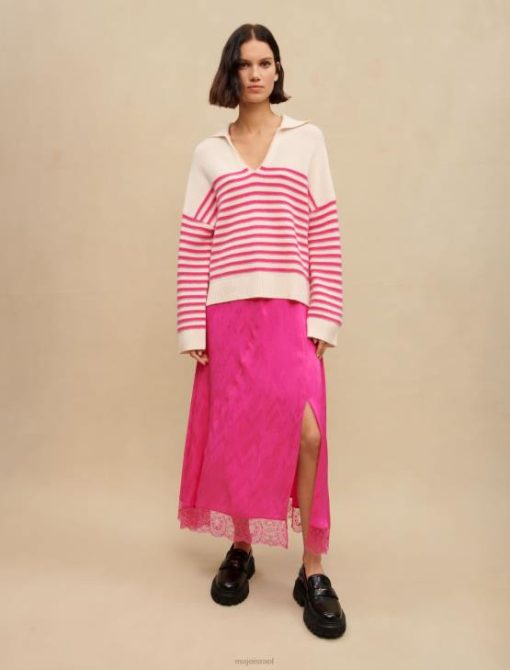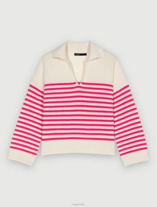 Maje נשים סוודר ברטון פסים ורוד/אקרו הַלבָּשָׁה P8N8323