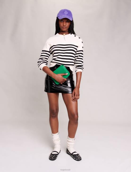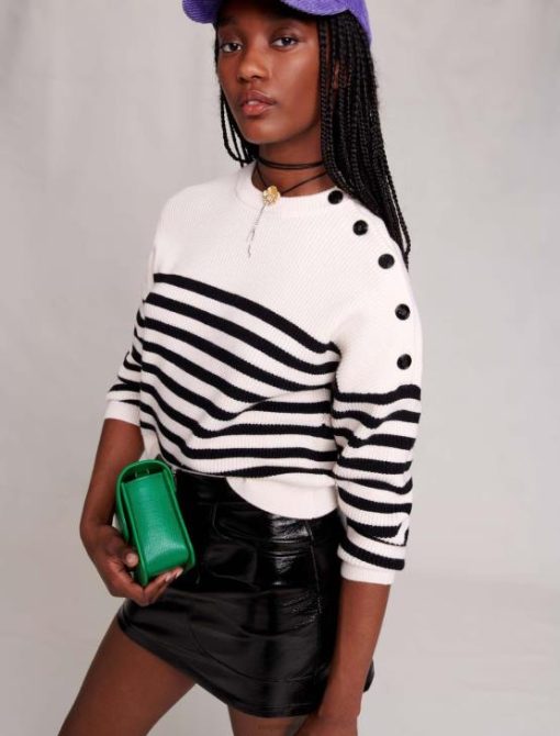 Maje נשים סוודר סרוג פסים שחור אקרו הַלבָּשָׁה P8N822