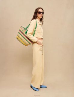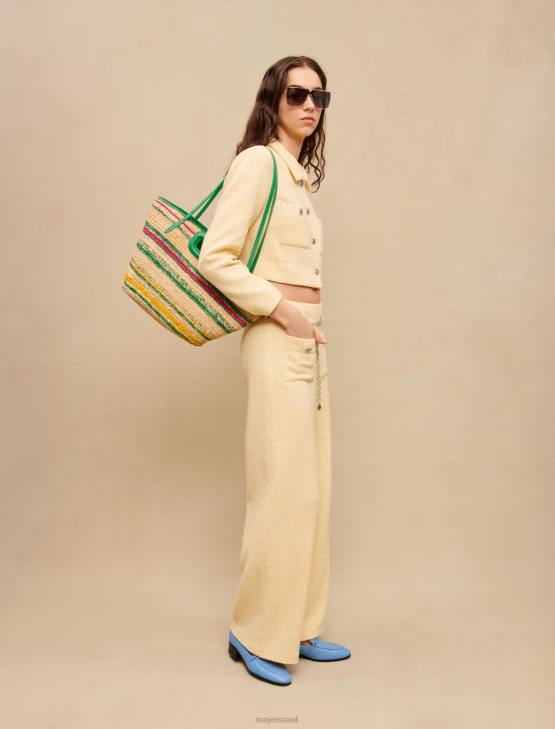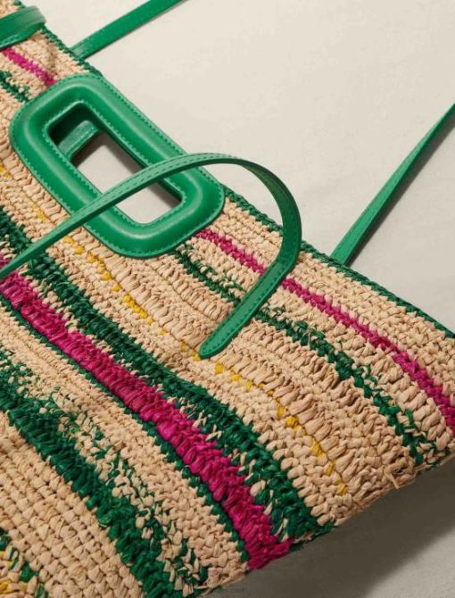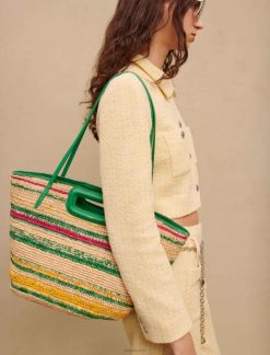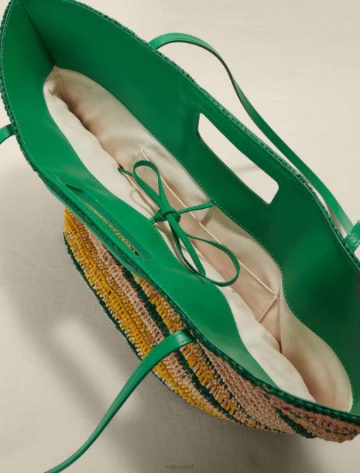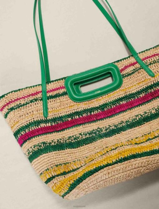 Maje נשים סל רפיה מפוספס ירוק קזינו אבזר P8N8465