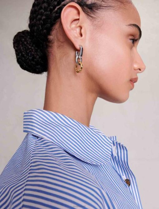 בהשראת סגנון הפאנק של שנות ה-90, הסטודיו יוצר אביזרים אלגנטיים ונועזים כדי להעניק פופ של סטייל נוסף לכל התלבושות שלך. עגילים אלה הם אופנתיים להפליא, וכוללים משחק גומלין של פרטים וצורות שכבות. מצויד בסוגר, חישוקי הכסף והזהב שלהם משתלבים זה בזה כדי להוסיף מגע של אופי למראה שלך. מושלם עבור שמלות ערב, או להשאלת סגנון נוסף לתלבושת קז’ואל או משרדית.