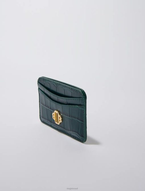 Maje נשים עור בולטות קרוקו ירוק בקבוק אבזר P8N8487