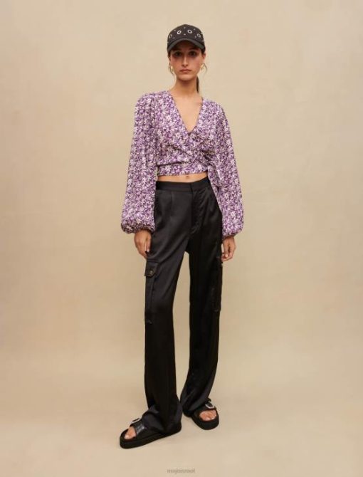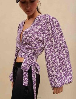 חולצת מעטפת זו עם שרוולים ארוכים וקשרים במותן מתהדרת בהדפס פרחוני וניתן לשלב אותה עם מכנסי מטען כדי לתבל את המראה