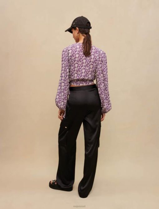 Maje נשים טופ ג’רסי עם עיטור תחרה שָׁחוֹר הַלבָּשָׁה P8N8113