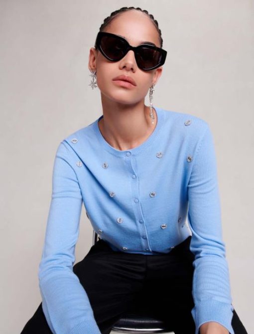 Maje נשים קרדיגן מעוטר כְּחוֹל הַלבָּשָׁה P8N893
