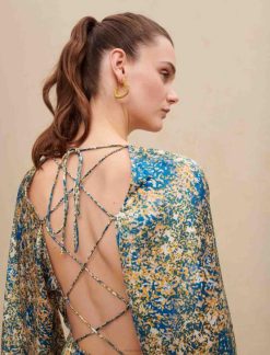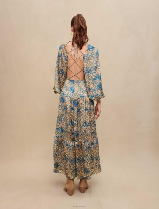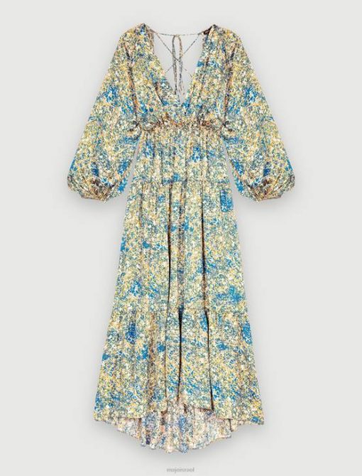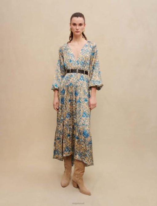Maje נשים שמלה מודפסת ארוכה תקציר כחול הַלבָּשָׁה P8N8172