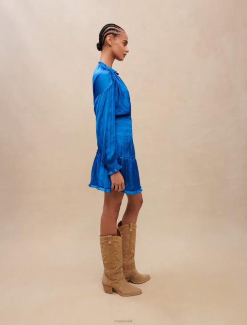 השמלה הזו עם חלוקים מהמותניים ועד הירכיים היא נשית ביותר. צווארון ה-V שלו, סלסולים בחצאית והשרוולים המהודקים בחפתים כולם משדרים אלגנטיות. מושלם ליום במשרד.