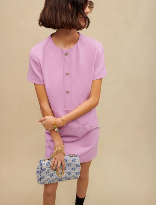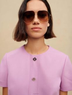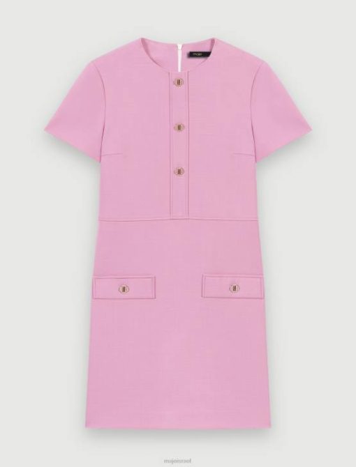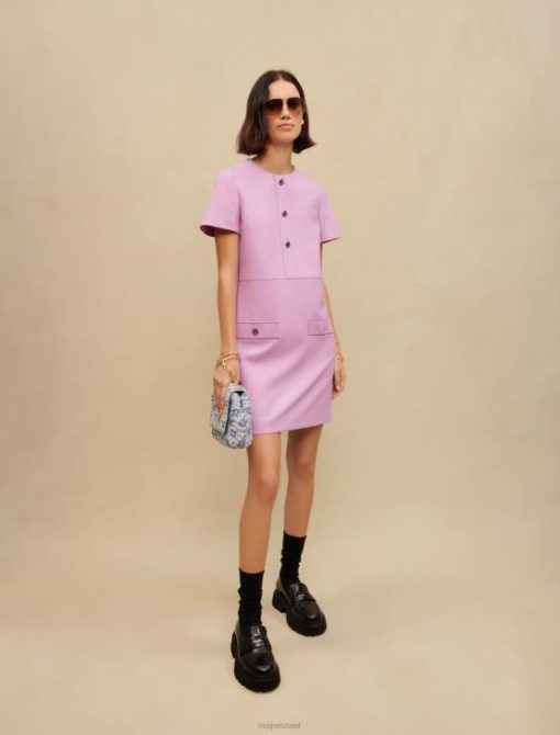 Maje נשים שמלה קצרה בגזרה ישרה פרמה סיגלית הַלבָּשָׁה P8N8259