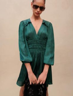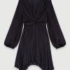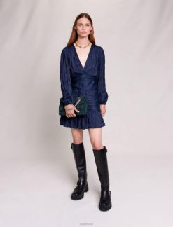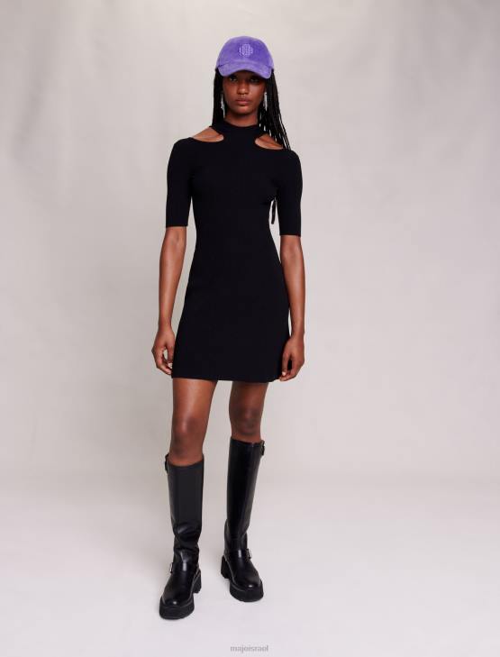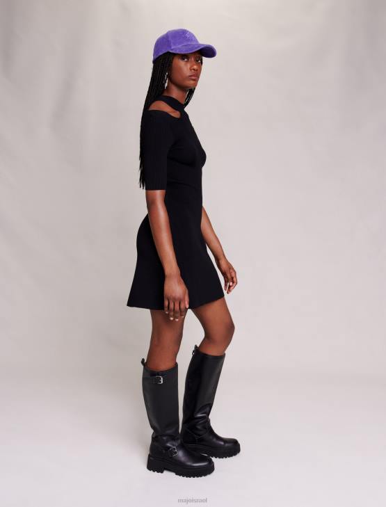 שמלה קצרה מצולעת זו בעלת אפקט עור שני, עם לוחות חתוכים מדהימים. כולל צווארון גבוה ושרוולים באורך 3/4, יש לו פרטים חתוכים וחצאית מתרחבת. אידיאלי למבנה הצללית שלך בצורה מסוגננת, הוא משלב נוחות ואלגנטיות, ומוסיף מגע של אופי למראה שלך.